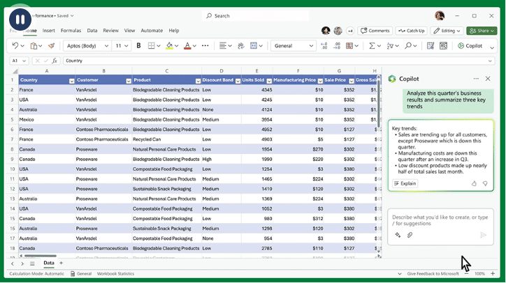 Displaying the Business Chat in Excel (Source: Microsoft)